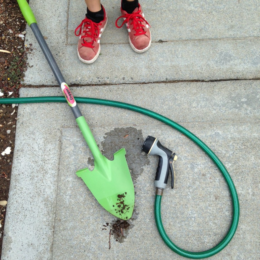 I expect a huffy and whiny NOOOOOO!!!! but instead he looks at me for a few seconds. His eyes light up and he takes a deep breath while raising his eyebrows, and I know an idea is about to make its way into the universe. He carefully presses his pointer finger onto one of the shiny flax seeds and once it sticks, he brings it up to his face to examine it, making himself go cross-eyed in the process. He then transfers it into his palm, cradling it there and looks up at me with his saucer-sized brown eyes and exclaims, jumping up and down, “Mamma!! We are going to grow BREAD!!! We are going to have a BREAD PLANT!” Before I can piece together what he is talking about he is out the front door, with his little sister squealing behind him as if she can feel his sheer excitement in the air and is feeding off of it. He grabs one of the metal shovels that we had to buy at the nursery a few weeks prior because he and sister made their way to the display and started banging them on the concrete floor before I could confiscate the digging tools. With everyone now staring at me I felt like I couldn’t just put them back as I was sure they were a bit dinged up. The other part thought c’mon people, they are shovels, they aren’t going to stay pristine for long anyway. I couldn’t take the judgement, so $40.00 later we were the proud owners of two new shovels we didn’t know we needed.