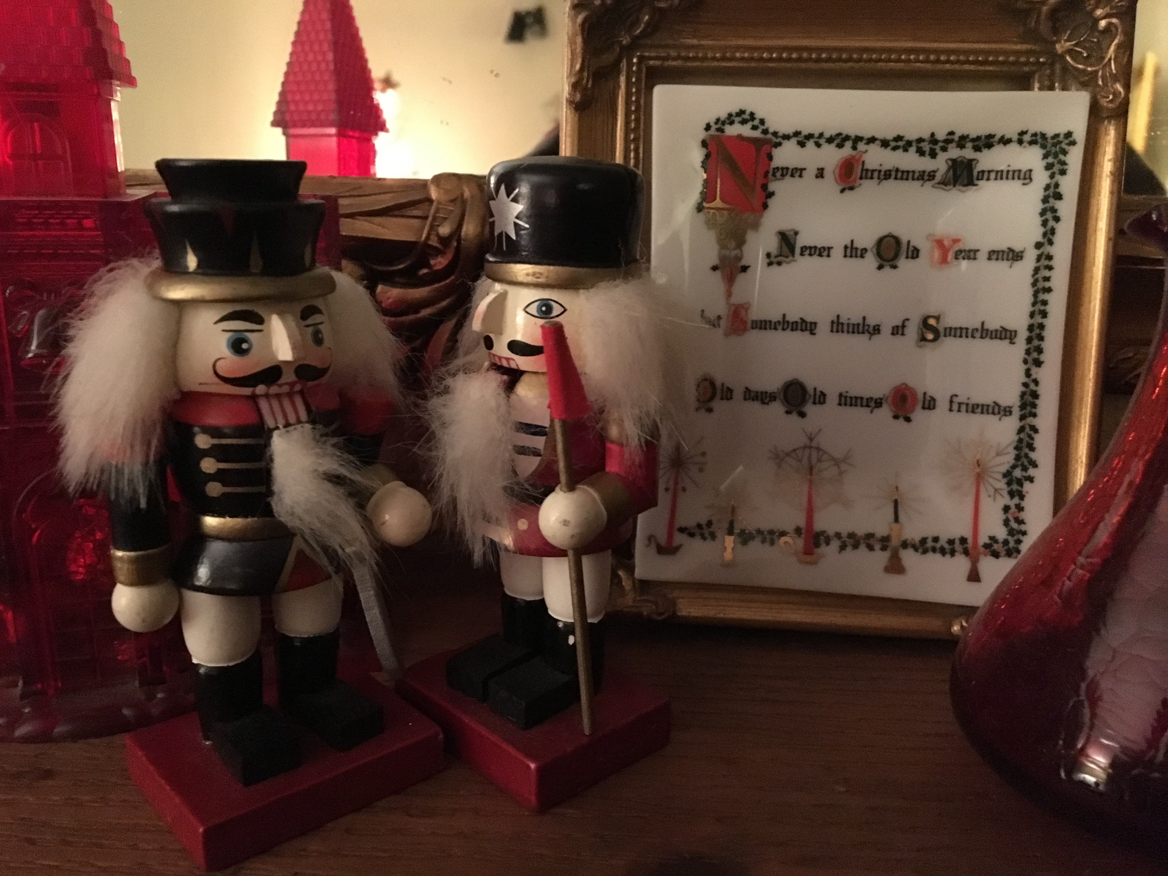 They knew Christmas as a dangerous time. New lights, tiny, colored and flaring alerted the lions to new dangers, new potential hazards at every corner of the room. Then the small ones brought cataclysm and chaos. The lions became playthings taking rides in red wagons and on pillows down the stairs. Eventually rescued and given new posts, the two knew better than to get too comfortable.