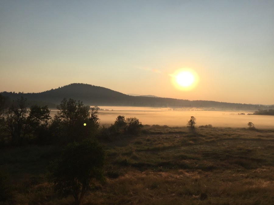 There is a field behind our new house, with an invisible stream buried under all that tall grass. I know–from a map–that this little swath of hidden blue becomes the Lacamas River, just east of where I can see.
