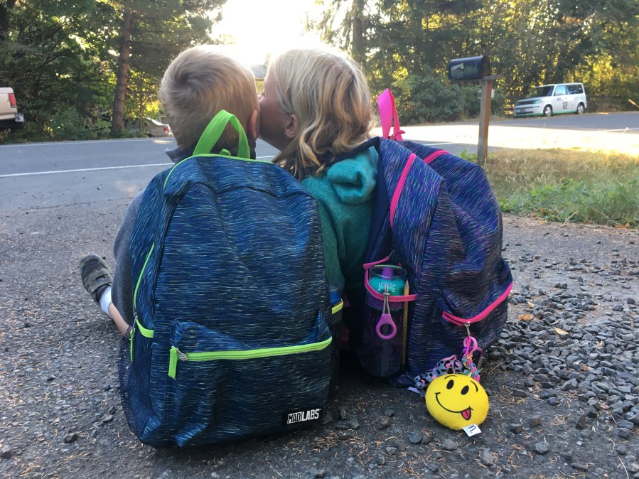 The bus drives by before turning around at the dead end to come back for us, so we have about a minute for final hugs and parting exhortations. When it arrives they stride boldly to the doors and climb the tall steps and find a seat together by the window so they can wave and blow kisses. The bus pulls away and within seconds I can’t see them anymore.