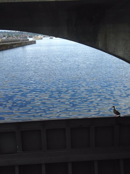 As we walked through the Locks looking at the boats and soaking in the bits of sunshine that broke through the quintessential Seattle overcast, I heard a distressed and repetitive quacking that triggered my mamma bear radar, and I knew instantly something was off. As we approached a gathering crowd, a saw a duck pacing…
