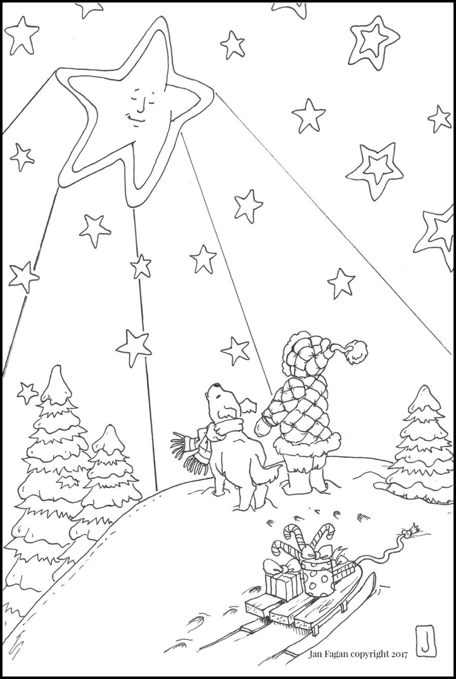 In addition to her whimsical colored drawing, Jan has graciously agreed to GIVE our readers a blank version of ‘Christmas Star’ to download, print, and color. So get out your colored pencils, and enjoy this month’s art and articles from all of us at Kindred Magazine. Happy holidays!